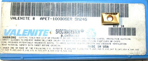 Lot of 4 New Valenite Indexable Carbide Milling Inserts APET-100305ER SM245
