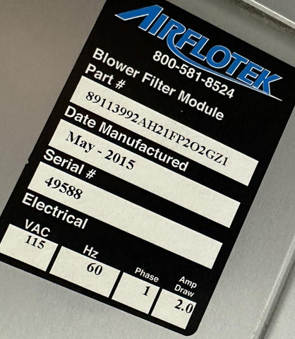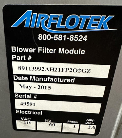 Equipped with (2) Airflotek Blower Filter Modules as pictured.