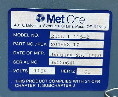 Met One 200L-1-115-2 Laser Particle Counter 115 Volts