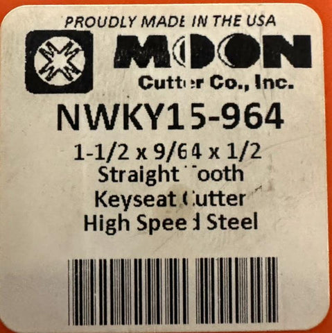 Moon Cutter NWKY15-964 Straight Tooth Keyseat Cutter 1-1/2 X 9/64 X 1/2