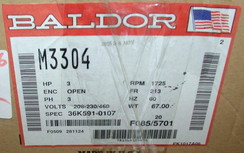 You are Purchasing a Baldor Electric 3-Phase AC Motor. Model: M3304 This Motor is New and Fully Guaranteed. 3 HP 208-230/460 VAC Shipping and handling is $39.90 within the Continental USA.