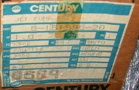 You are Purchasing a Century Single Phase AC Jet Pump Motor. Model: B669 This Motor is New and Fully Guaranteed. Shipping and Handking will be $19.90 in the Continental USA