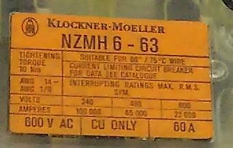 New Klockner Moeller NZM6-63 3-Pole Circuit Breaker 600 VAC 60 Amp