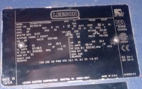 You are Purchasing a Leeson 3-Phase AC Step Shaft Pump Motor. Model: EVJ324TTDP4330BAL 801055.00 This Motor is New and Fully Guaranteed. We would gladley load it on your truck at no charge or help you plan the most economical delivery.