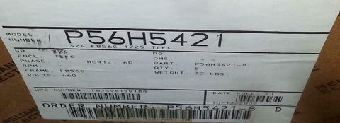 You are Purchasing a Reliance Electric 3-Phase AC Motor. Model: P56H5421 This Motor is New and Fully Guaranteed. 3/4 HP 460 VAC Shipping and handling is $29.90 within the Continental USA.
