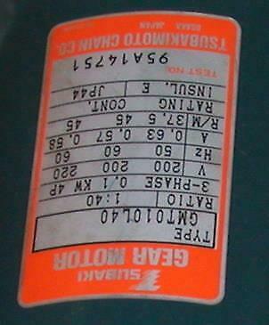 You are Purchasing a Tsubaki 3-Phase AC Gearmotor. Model: GMT010L40 This Motor is New and Fully Guaranteed. 0.1 KW 200-220 VAC