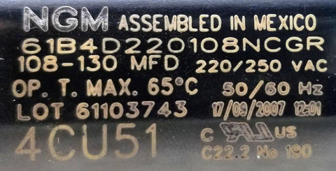 NGM 61B4D220108NCGR Motor Start Capacitor 220-250VAC 50-60Hz 108-130 MFD 4CU51