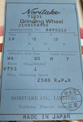 Noritake 71731 Grinding Wheel 18" x 5" x 1" WA 80 Grit 2588 RPM V75 80M (2 Pack)