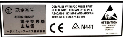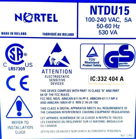 Nortel Networks MG-1000 Media Gateway NTDU15 100-240VAC 5A 50-60Hz 530VA