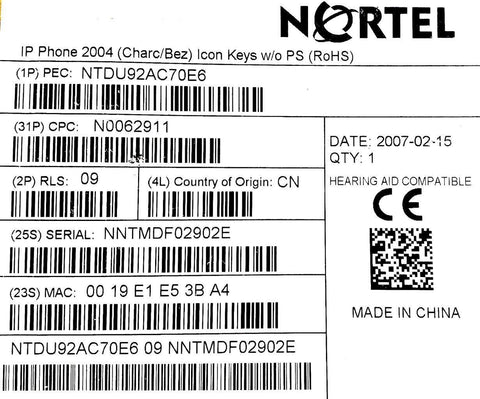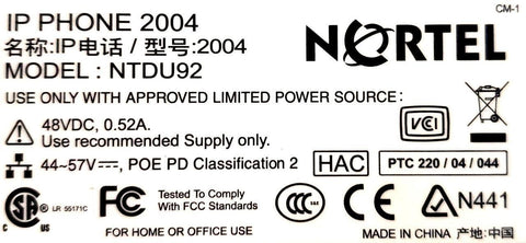 Nortel NTDU92 IP Phone 2004 48VDC 0.52A 44-57V Class 2 W/ Accessories