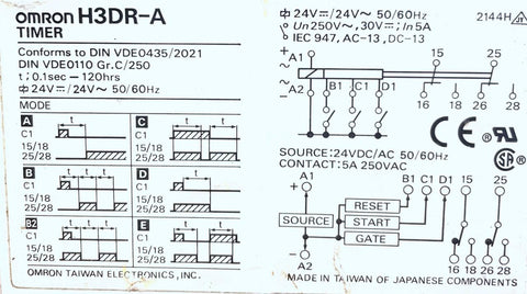 Omron H3DR-A Analog Solid State Timer Module 0.1SEC - 120HRS 24VDC 50/60HZ