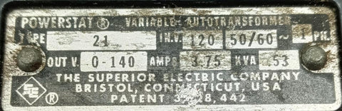 PowerStat Type 21 Variable Autotransformer 120V 50/60HZ 3.75A .53KVa