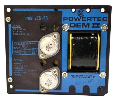 Powertec 2C5-6B DC Power Supply Input 115-230VAC 47-63Hz Output 4.5-6.3VDC