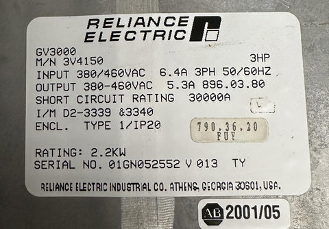 Reliance Electric GV3000 AC Drive 3 HP 2.2 kW 380/460V 3 Phase MV4150