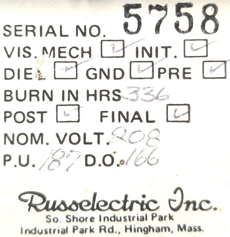 Russelectric UV100-190/208 AC Undervoltage Sensor A1 W/ Attenuator