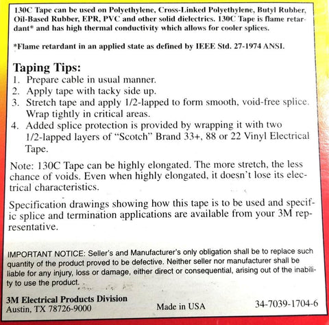 Scotch 130C Lineless Rubber Splicing Tape 2" x 30' x 0.030"