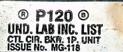 Siemens ITE Pushmatic P120 1 Pole Circuit Breaker 20A 120VAC 1 Phase Bolt-On
