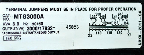 SIEMENS MTG300A 3KVA TRANSFORMER 110/115/120 VAC
