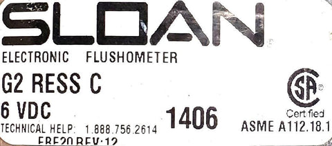 Sloan G2-RESS-C Electronic Flushometer 6VDC 1406