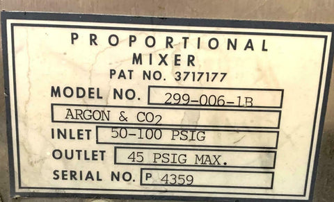 Smith 299-006-1B Proportional Mixer Argon & CO2 50-100 PSIG Inlet