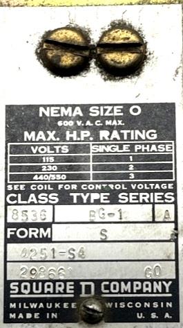 Square D 8536 BG-1 Motor Starter Series A Form S 115-600V 3 Phase