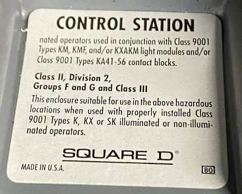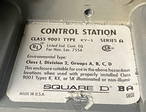 Square D 9001KY-1 Push Button Enclosure Control Station Series A