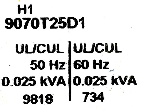 Square D 9070T25D1 Industrial Control Transformer 50/60Hz