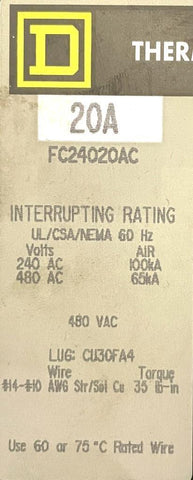Square D FC24020AC 2-Pole I-Line Circuit Breaker 20A 480VAC 1 PH Plug-In