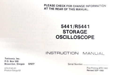 Tektronix 5441/R5441 Storage Oscilloscope Instruction Manual 070-2140-01
