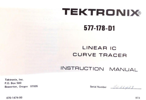 Tektronix 577-178-D1 Linear IC Curve Tracker Instruction Manual 070-1474-0
