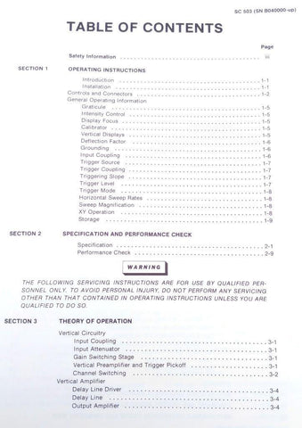 Tektronix SC 503 10 MHz Storage Oscilloscope Instruction Manual