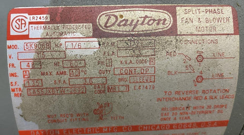 Motor HP: 1/6