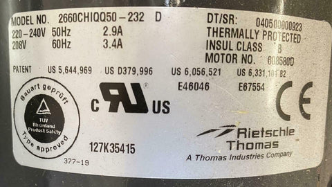 Thomas 2660CHIQQ50-232 Pump Motor 220/240 Volts 2.9 Amps