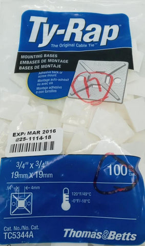This is a fixed listing for a Thomas & Betts Mounting Base Model: TC5344A Specifications: Brand: Thomas & Betts Type: Mounting Base 3/4" x 3/4" 100 QTY White The item is exactly as pictured.