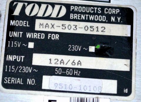 Todd MAX-503-0512 Power Supply 5 VDC @ 80 Amps ±12 VDC @ 10 Amps