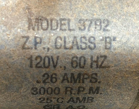 UPPCO 37B2 Evaporator Fan Motor Assembly 120V 60HZ 0.26A 3000RPM 25°C Ambient
