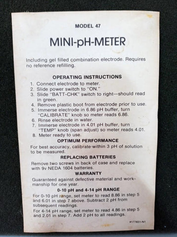 VWR Scientific Inc. Model 47 Analog Mini-PH-Meter