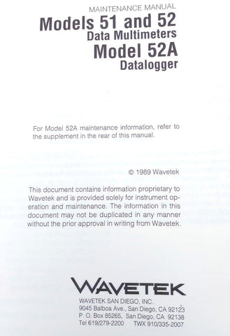 Wavetek Models 51 / 52 Data Multimeter & 52A Datalogger Mainteneance Manual