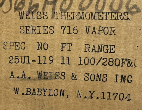 Weiss Thermometer Series 716 Vapor Thermometer 100-280°F 40-135°C