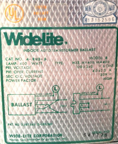 Widelite 4-RIRB-B Autotransformer Ballast 400W Mod B 120-240V
