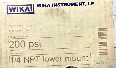Wika 52802105 4.5" Liquid Filled XSEL Pressure Gauge 200 PSI 1/4" NPT 233.34
